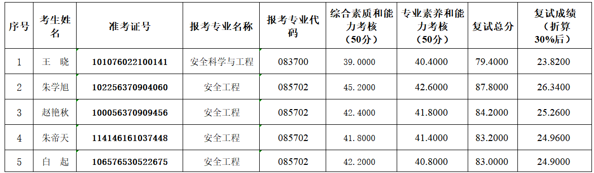 安全工程学院2026年硕士研究生招生考试调剂复试成绩(第四批次)