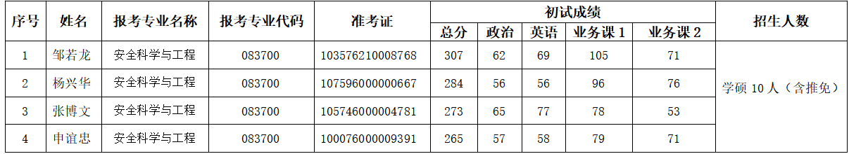 安全工程学院2026年硕士研究生招生考试调剂复试成绩(第八批次)