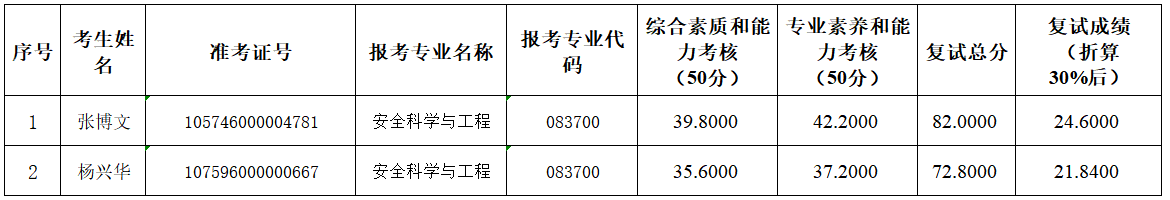 安全工程学院2026年硕士研究生招生考试调剂复试成绩(第八批次)