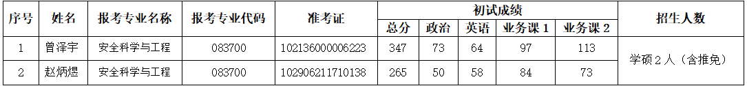 安全工程学院2026年硕士研究生调剂复试名单
