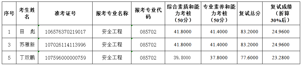 安全工程学院2026年硕士研究生招生考试调剂复试成绩(专硕第二批次)